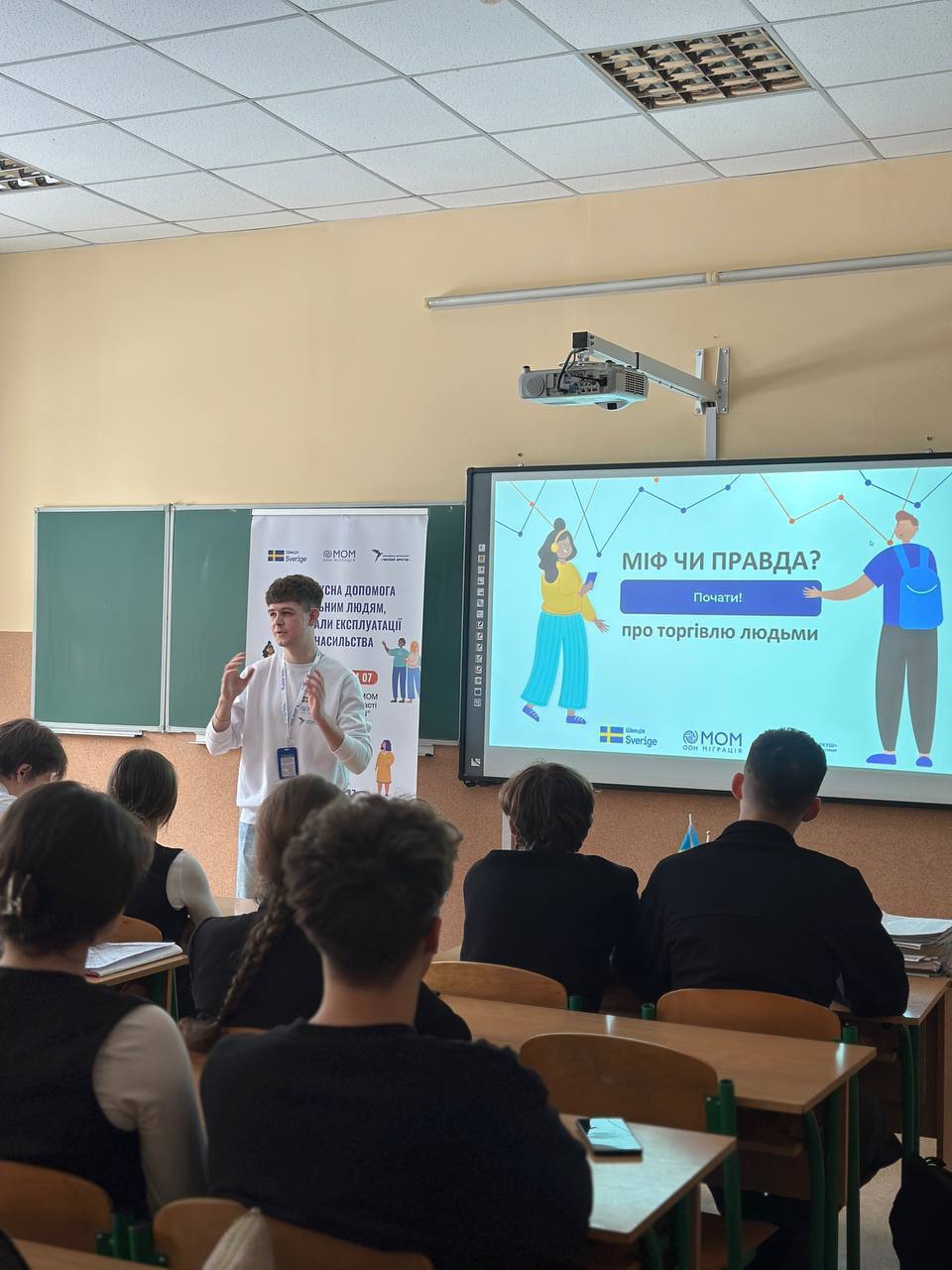 В 11-В класі відбувся інформаційно-просвітницький захід на тему «Мігруй та працюй безпечно!», який провів тренер з протидії торгівлі людьми Мільчак Володимир, представник громадської організації «Чистий аркуш».
