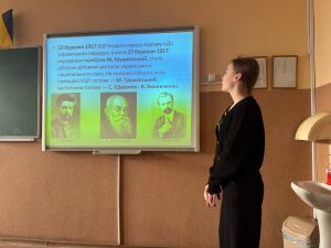 У 10-В класі відбулася історична година, присвячена 109-й річниці з дня заснування Української Центральної Ради.