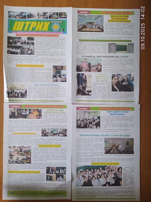 У вересневому випуску щомісячного інформаційного вісника «Штрих» розміщено статті, репортажі, власні думки учнів за пережиті ними події вересня місяця. Відкриває першу сторінку часопису матеріал «Перший день осені, ти незабутній!». У статтях, приурочених до 1 вересня – Дня знань «В єднанні сила народу!», «Сила єдності в часи випробувань!», «Незламні українці: хто ми і у чому ми сильні», «Наша сила в єднанні!», Ми – майбутнє України!» та ін. говорилося учителями та вихователями про те, що нас робить сильними, як спільноту, націю країну…