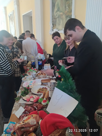 Також увазі покупців була представлена передноворічна виставка - продаж новорічних прикрас до зустрічі нового 2026 року. Вчителі, вихователі розкупили вироби учнів 8-го та 9 - го класів, котрі на уроках технологій творили новорічні композиції: міні-ялинки, новорічні чашки, ялинкові іграшки, різдвяні віночки та ін.