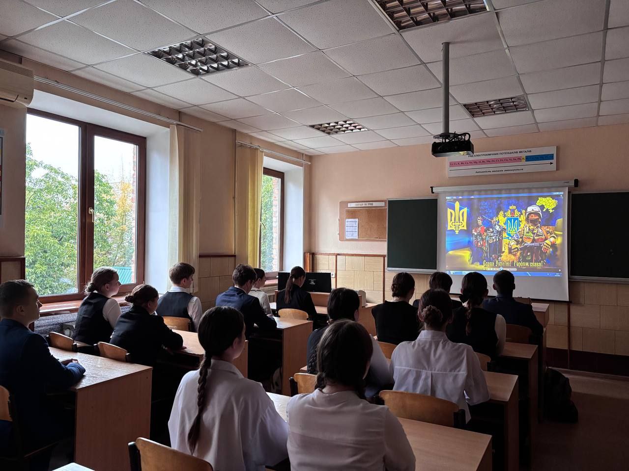 У 11-Г класі відбулася патріотична година, присвячена Дню захисників і захисниць України. Це свято, яке об’єднує всю націю, адже саме завдяки мужності та жертовності українських воїнів ми маємо можливість зараз жити й навчатися