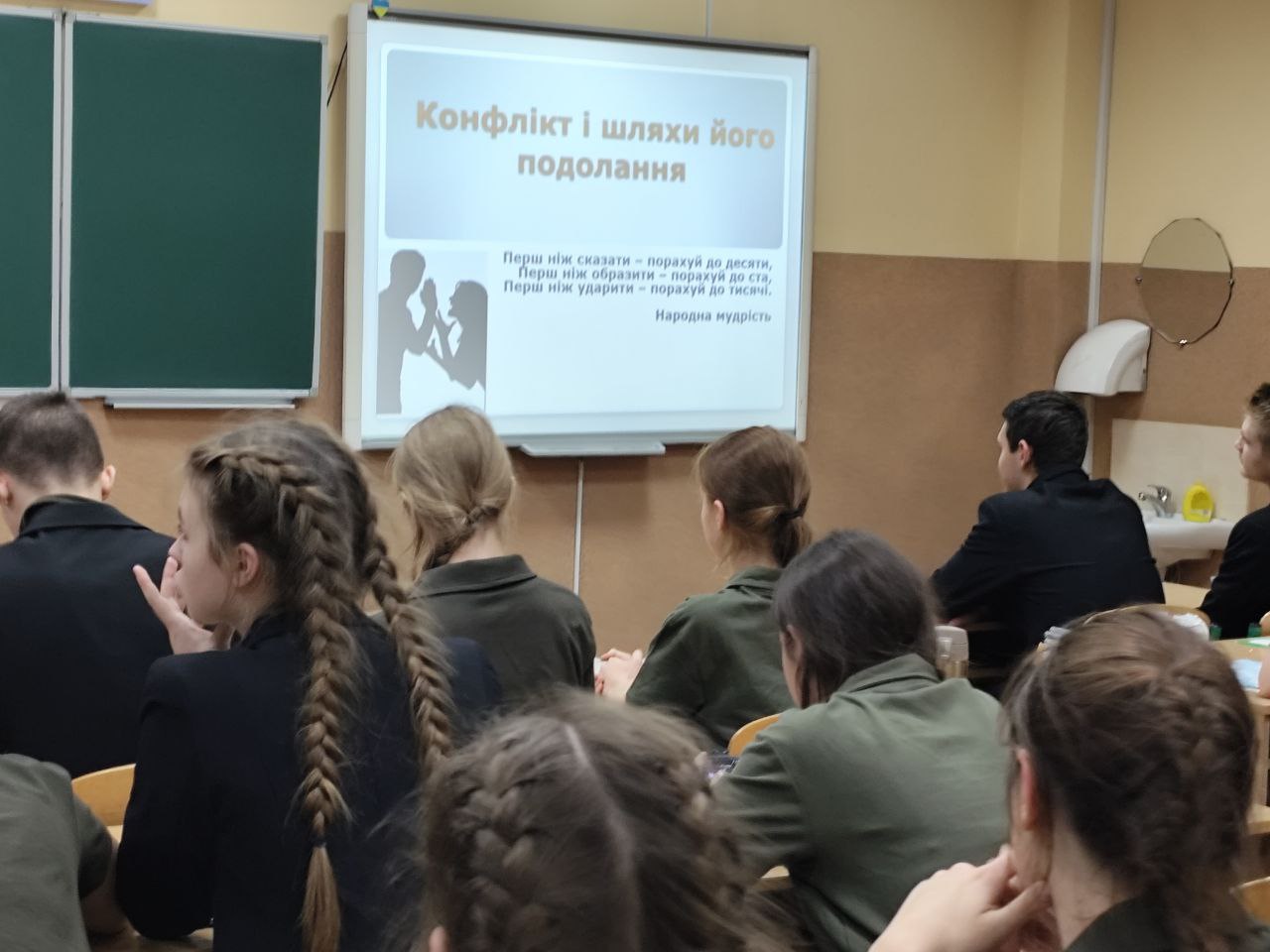 Під час заняття десятикласники обговорили причини виникнення конфліктів, можливі шляхи їх подолання, взяли участь у міні-дискусіях.