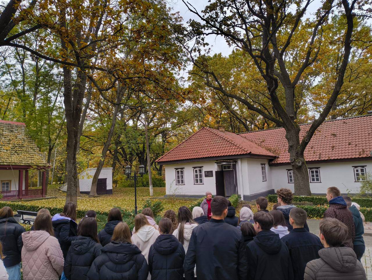 На початку екскурсії дітей зустріла привітна співробітниця музею, яка повела їх стежками, якими колись ходив сам драматург. Ліцеїсти побачили стару садибу, невеликий музей, фруктовий сад і ставок. Атмосфера хутора була спокійна, затишна, ніби час тут зупинився.