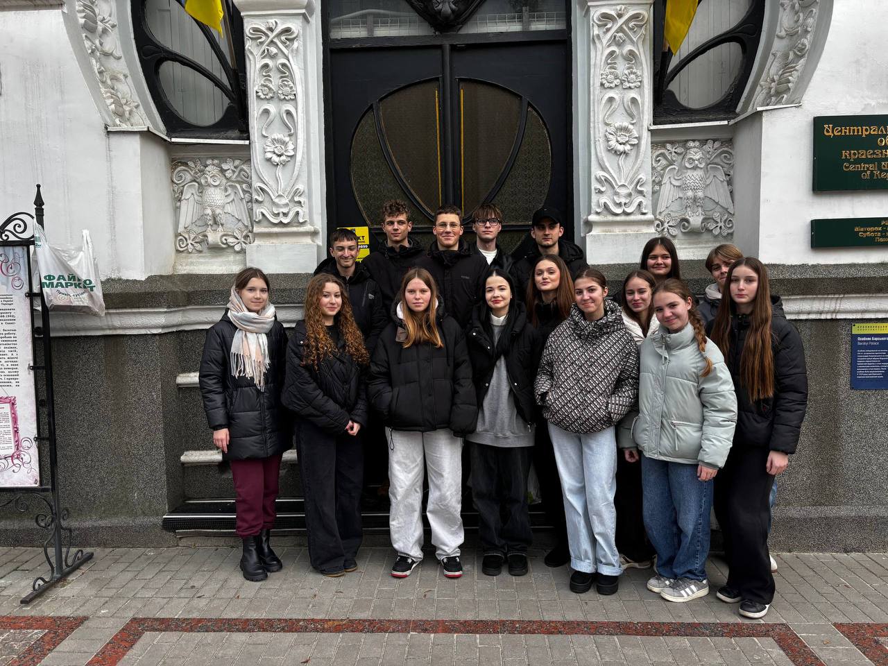 Учні оглянули будинок купця А. Д. Барського, який зараз є обласним краєзнавчим музеєм, побудований у 1910 році за проєктом О. Лишневського, у стилі модерн.