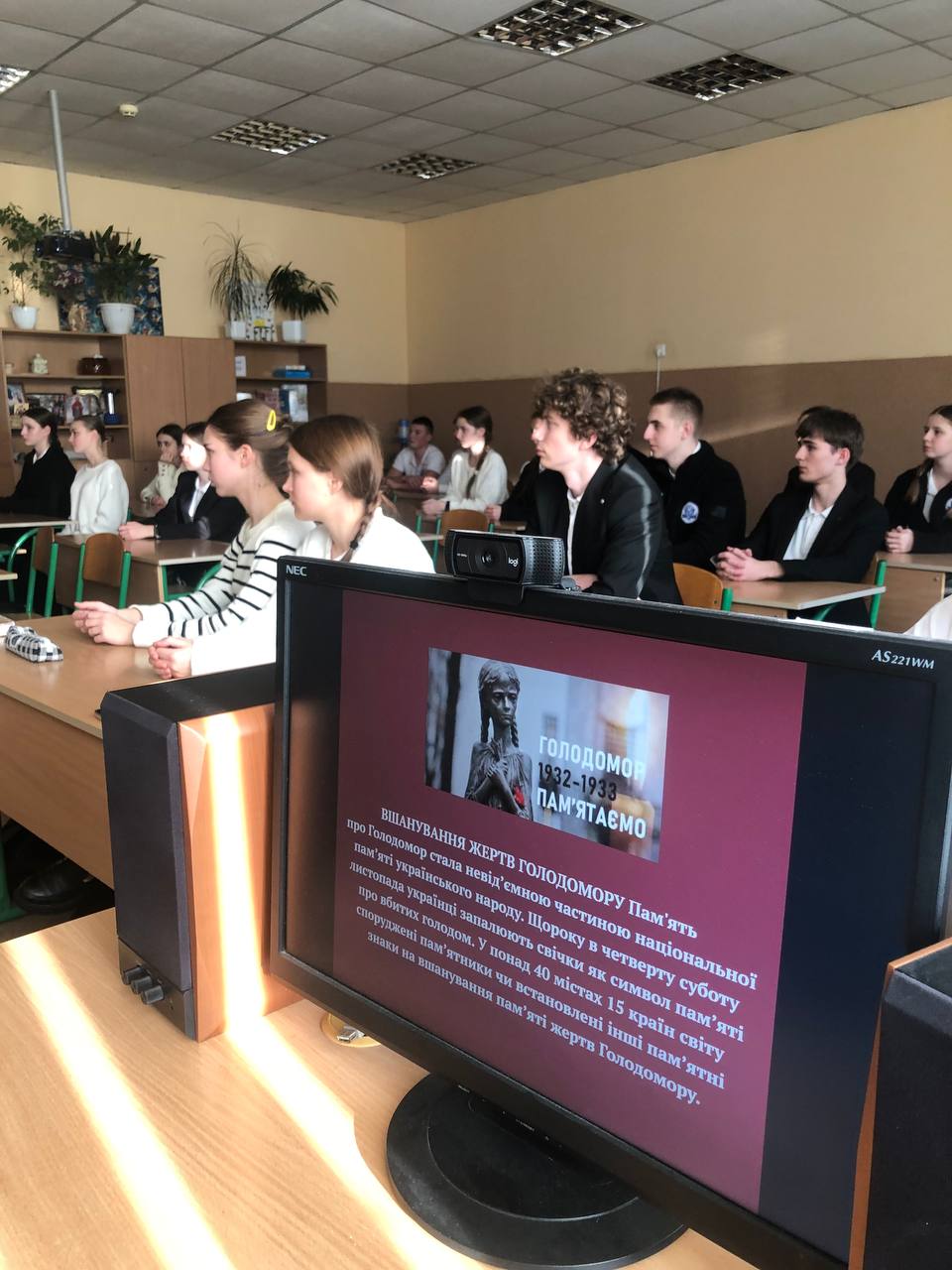 До Дня пам’яті жертв Голодомору 1932-1933 рр. та жертв політичних репресій в 10-В класі було проведено годину памʼяті «Голодомор. Великий злам»