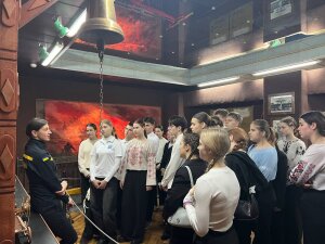 Екскурсовод детально розповіла про основні причини займання, показала зразки протипожежних засобів та нагадала, як діяти у випадку надзвичайної ситуації. Особливий інтерес викликали демонстраційні стенди, які наочно показують, як швидко може поширюватися вогонь, якщо не дотримуватися правил безпеки.