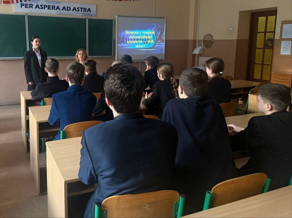 Ліцеїсти дізналися, чому саме в осінньо-зимовий період різко зростає ризик дорожньо-транспортних пригод за участю пішоходів, та як прості засоби можуть підвищити видимість пішохода на дорозі. Під час заходу старшокласники переглянули інформаційні матеріали про принцип роботи світловідбивачів, пригадали правила пішоходів у темряві, ознайомилися з різними видами флікерів та правилами їх правильного розміщення на одязі.