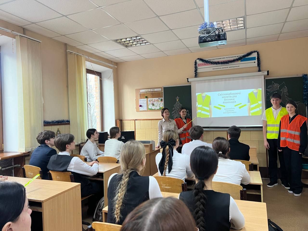 В 11-Г класі відбулася інтерактивна бесіда на тему «Світло життя. Безпека на дорозі в темну пору доби», метою якої було підвищення рівня обізнаності учнів щодо безпечної поведінки на дорогах у вечірній та нічний час.