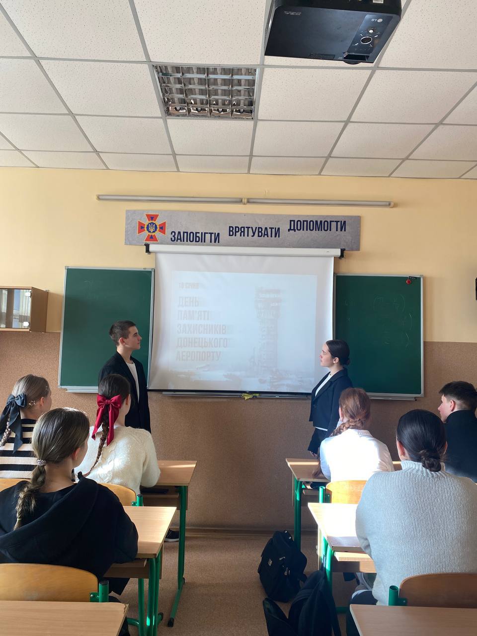 До Дня вшанування захисників Донецького аеропорту, в 10-Г класі був проведений урок памʼяті «Герої не вмирають - вони у памʼяті живуть». Під час заходу учасники ознайомились з історією оборони Донецького аеропорту, яка тривала 242 дні - з вересня 2014 до січня 2015 року. Українських воїнів, які тримали оборону в надскладних умовах, назвали «кіборгами». Це слово стало символом сили духу, відваги та незламності. Через відеофрагменти, документальні свідчення, спогади побратимів учні змогли глибше відчути реалії війни та ціну миру.