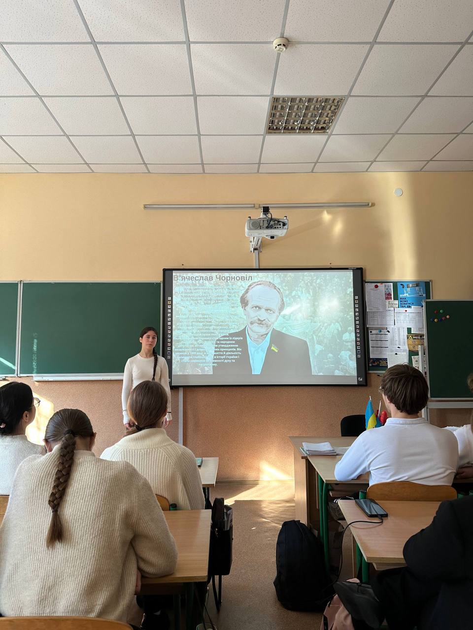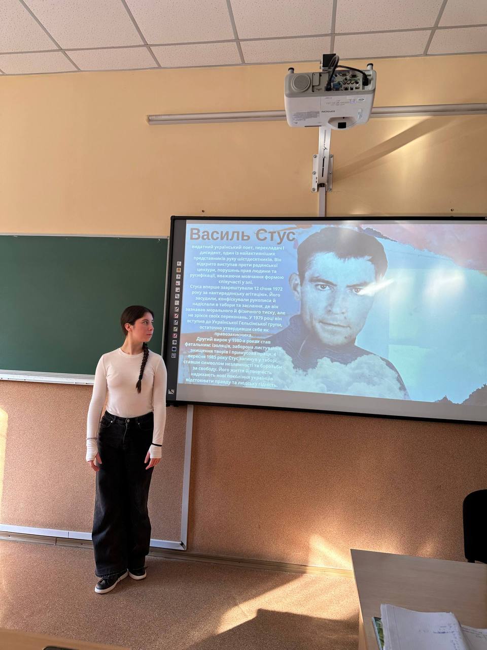 Класний керівник Н. Подгорна розповіла учням про людей, які не скорилися радянській тоталітарній системі та відстоювали свої переконання, українську мову й культуру. Учні дізналися про масові арешти дисидентів у січні 1972 року, репресії проти шістдесятників та умови ув’язнення політв’язнів у таборах.