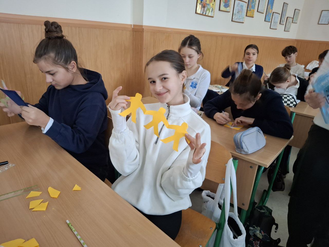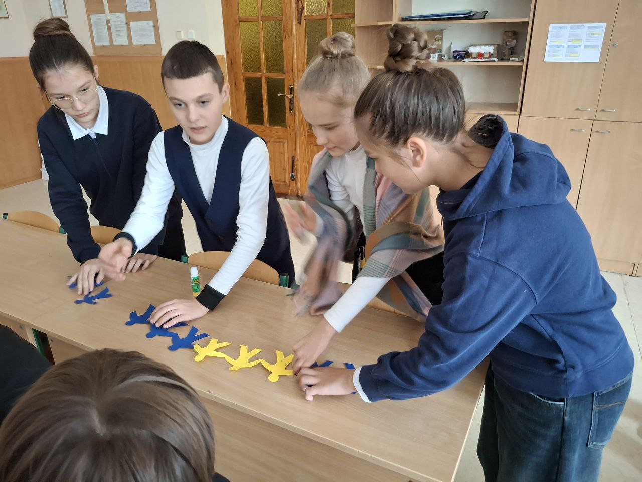 Після обговорення побаченого учні виконали творче завдання — виготовили символічний паперовий ланцюг у кольорах національного прапора. Цей ланцюг став уособленням єдності, дружби та спільної відповідальності за майбутнє України.