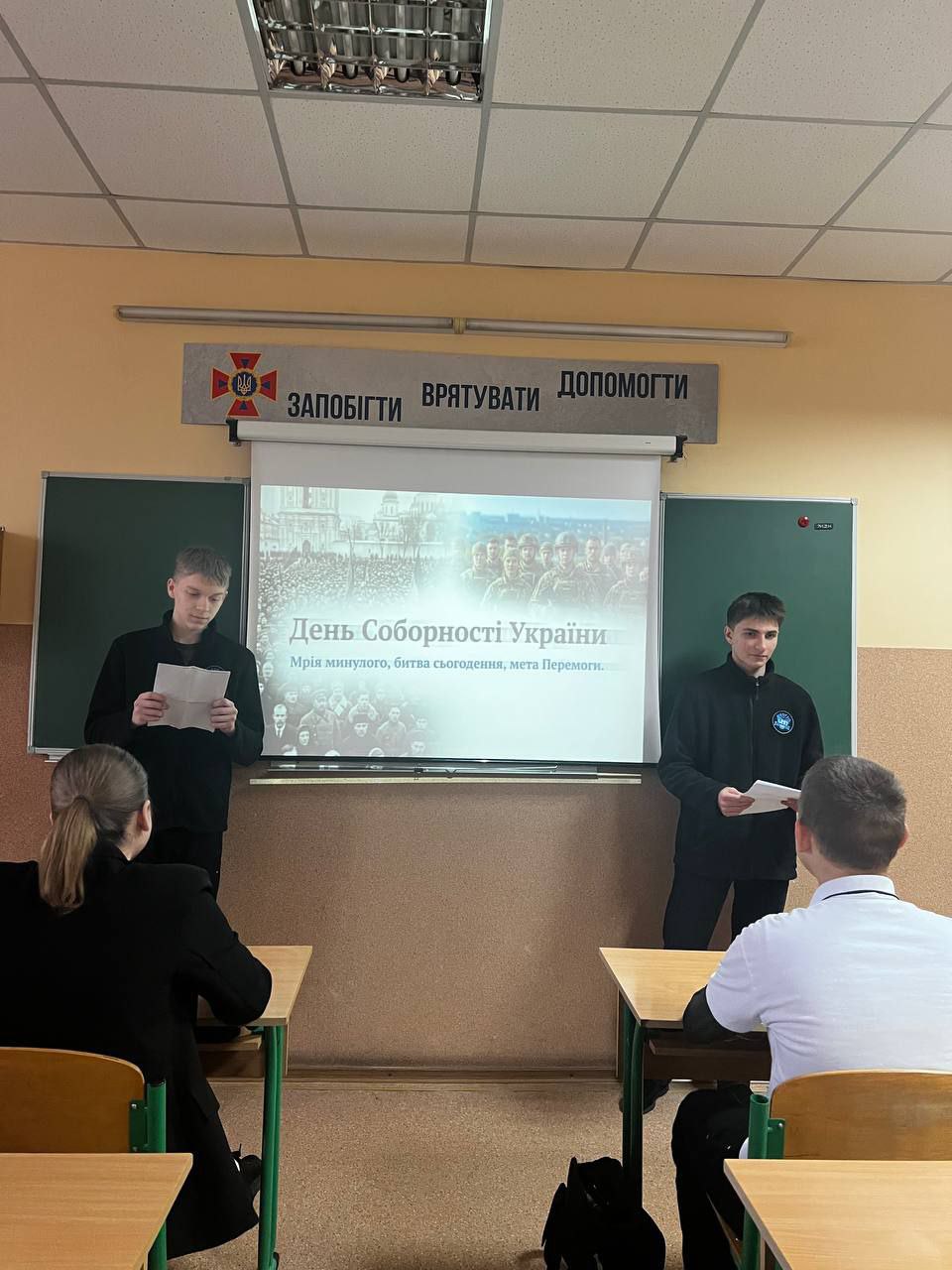 Під час заходу учні ознайомилися з історичними передумовами об’єднання українських земель, обговорили значення поняття соборність, його роль у становленні незалежної України та актуальність ідеї єдності в умовах сьогодення. Особливу увагу було приділено усвідомленню відповідальності молодого покоління за збереження національних цінностей, державності та миру.