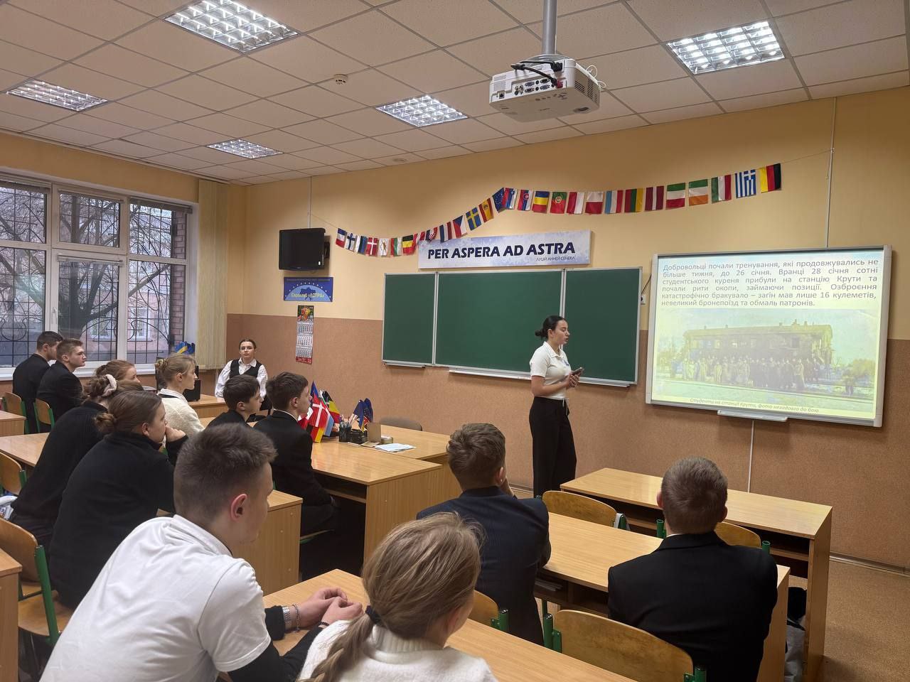 У 10-Б класі було проведено урок-реквієм "Крути: пам'ять, що надихає", присвячений подвигу Героїв Крут — юних захисників України, які ціною власного життя стали на захист незалежності держави.