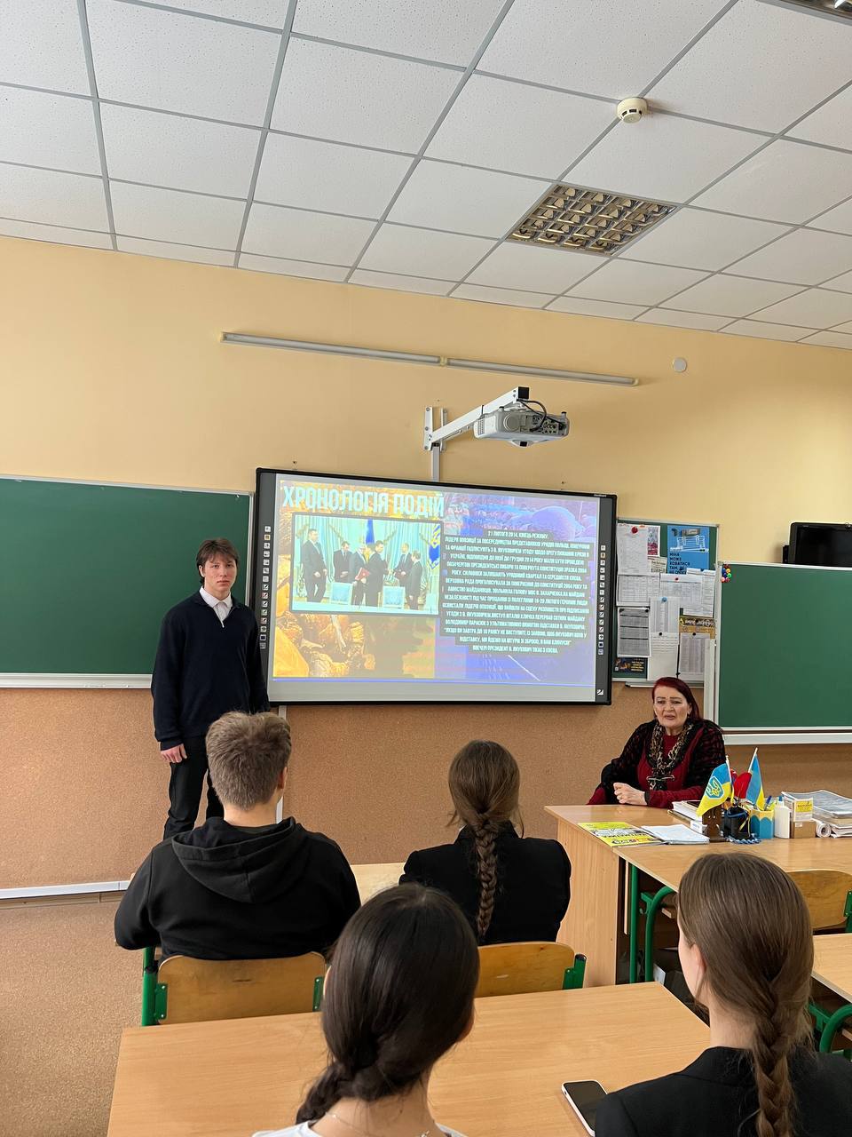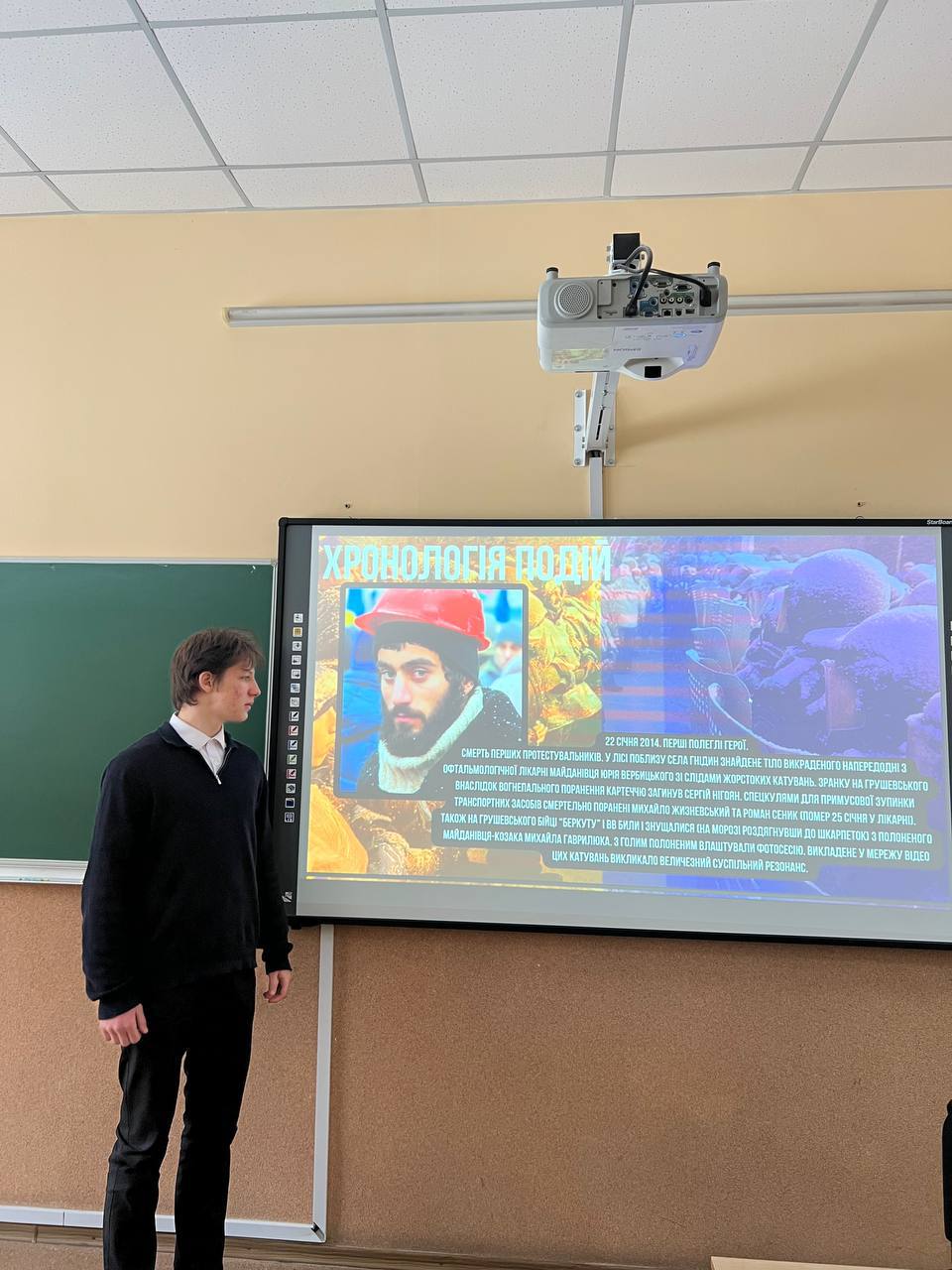 20 лютого в 11-В класі було проведено тематичну годину «Люди-творці. Небесна сотня.», присвячену вшануванню подвигу учасників Революція Гідності та Героїв Небесної Сотні. Метою заходу стало формування в учнів патріотичної свідомості, поваги до тих, хто віддав своє життя за свободу й незалежність України, а також усвідомлення важливості збереження історичної пам’яті.